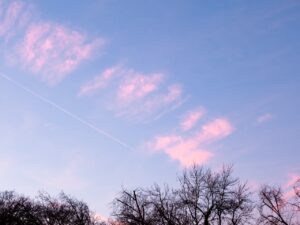 Sans voyager le spectacle offert par le ciel est toujours renouvelé. Quelques minutes, quelques secondes suffisent aux couleurs à pâlir ou bien au contraire à flamboyer. Une beauté simple, en levant le regard, à la portée de tous.